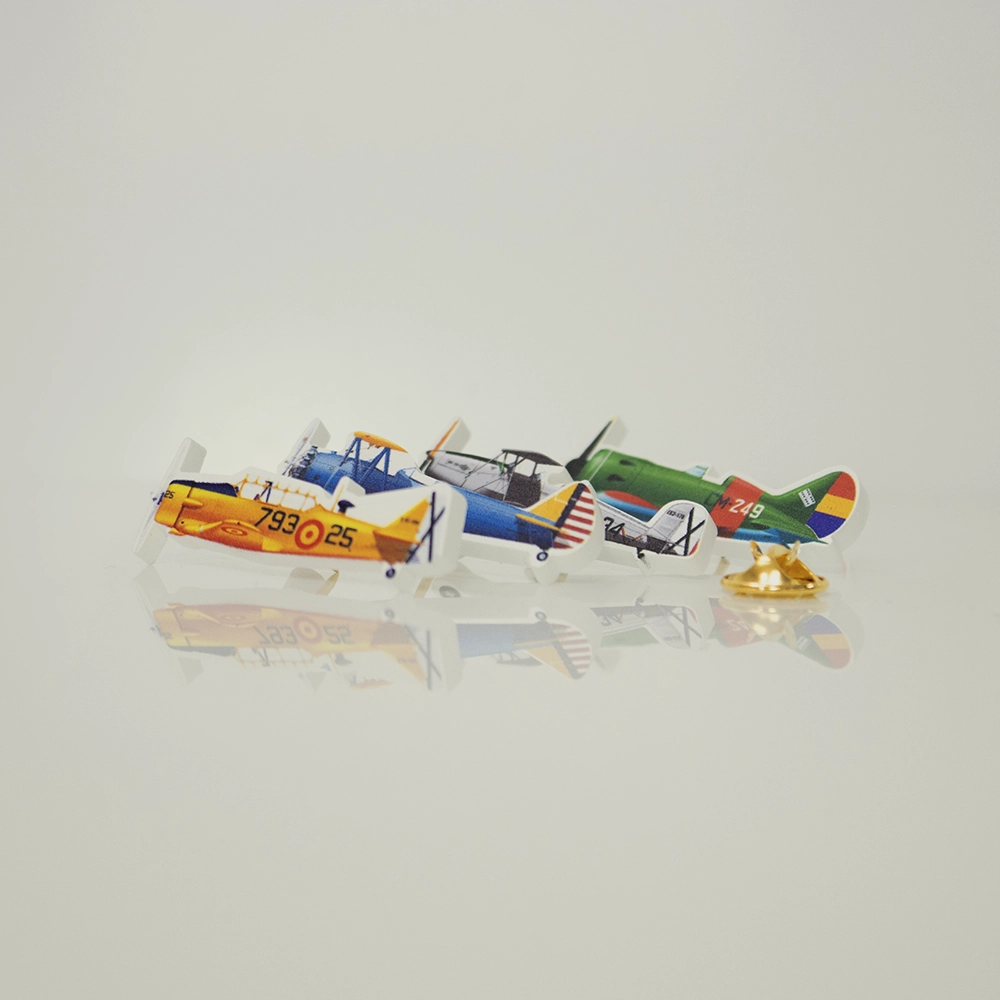 Este exclusivo pin está fabricado en metacrilato de alta calidad, un material ligero y resistente, ideal para resaltar cada detalle del diseño. La impresión sobre él es tinta UVI directa garantizando una reproducción de colores vibrante y duradera, con un acabado brillante que protege la imagen del desgaste y la decoloración.